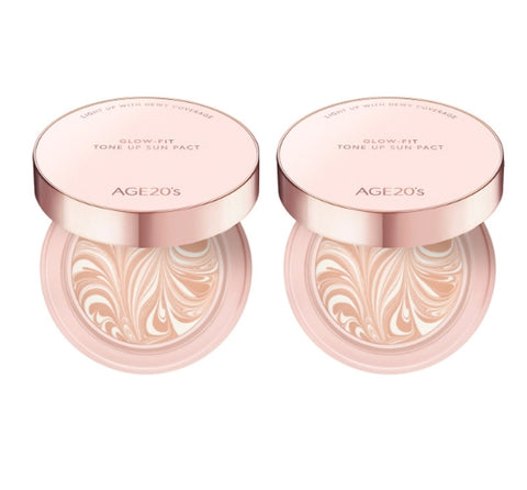 2 x AGE 20's Glow Fit Tone Up Sun Pact (Main 12.5g + Refill 12.5g) SPF50+ PA++++ from Korea
