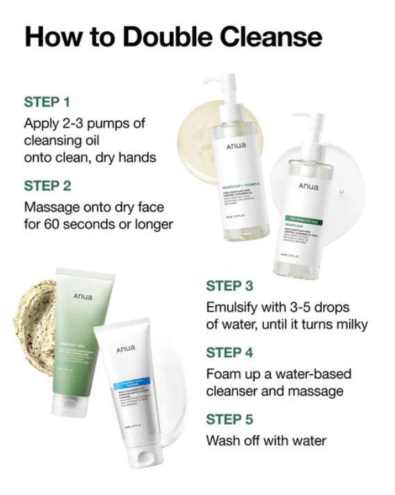 2 X Anua Heartleaf Pore Control Cleansing Oil 200ml brings a Korean double-cleanse essential to your skincare routine, pairing lightweight oil-based makeup removal with skin-calming heartleaf extract to help dissolve sebum, sunscreen and daily grime while supporting clearer-looking pores and a balanced, comfortable finish.