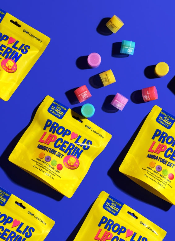The CNP Propolis Lipcerin Mini Set features four travel‑size (≈4.5 ml each) flavour variants of Propolis Lipcerin lip balm/mask in a reusable collectible case. Enriched with propolis extract, Manuka honey, ceramides, and PHA, the set provides long‑lasting hydration, gentle exfoliation, and barrier‑supporting care for soft, nourished lips.