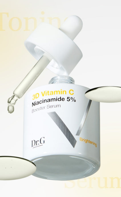 Brighten and balance your complexion with Dr.G 3D Vitamin C Niacinamide 5% Booster Serum, a dermatologist-tested brightening serum featuring 50,000 ppm 3D Vitamin C and niacinamide. This 30 ml booster helps reduce dark spots, even tone, and improve skin clarity while maintaining hydration.