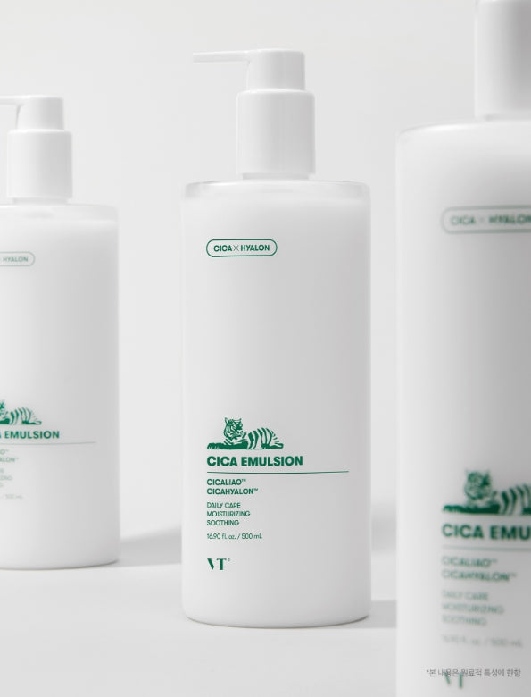 VT COSMETICS Cica Emulsion 500 ml is a large‑capacity Korean soothing and hydrating daily emulsion formulated with Centella Asiatica and moisture‑locking ingredients to calm, balance, and deeply nourish all skin types.