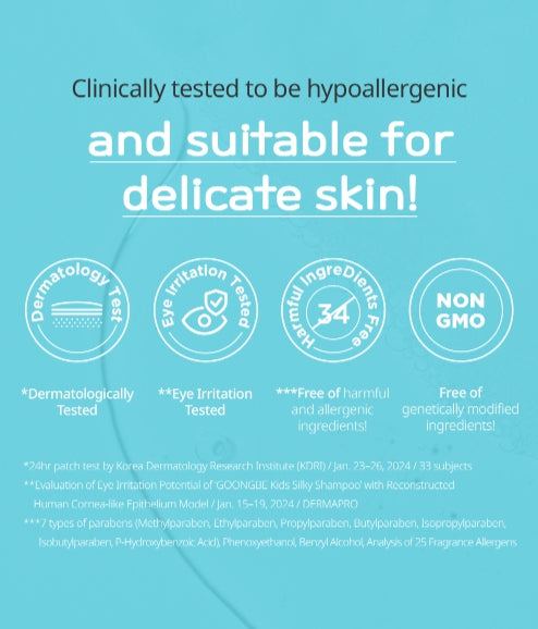 GOONGBE Kids Fresh Shampoo 300ml paired with Softening Conditioner 200ml delivers gentle, effective hair and scalp care formulated for children — a silicone-free shampoo that cleanses deeply to remove fine dust and neutralize scalp odors, plus a softening conditioner that detangles and restores moisture for smooth, manageable hair. Designed with sensitive scalps in mind, this duo supports healthy scalp balance with dermatologically tested mildness and a formulation focused on minimizing irritation while keeping hair soft and protected.