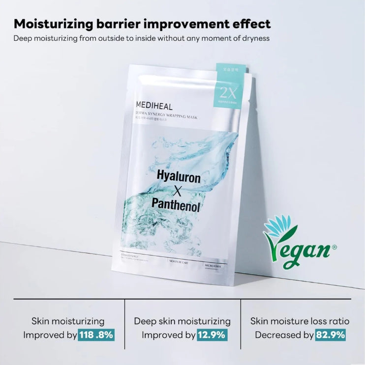 20 x MEDIHEAL Derma Synergy Wrapping Mask - Moisture (Hyaluron x Panthenol) from Korea