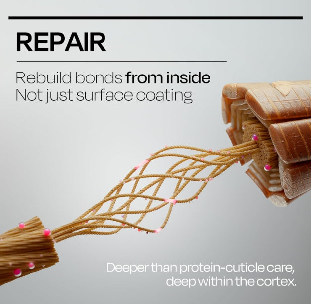 - Bonding Repair Step One: Reconstructs internal hair structure as the preparatory step in a 3-step professional repair system.