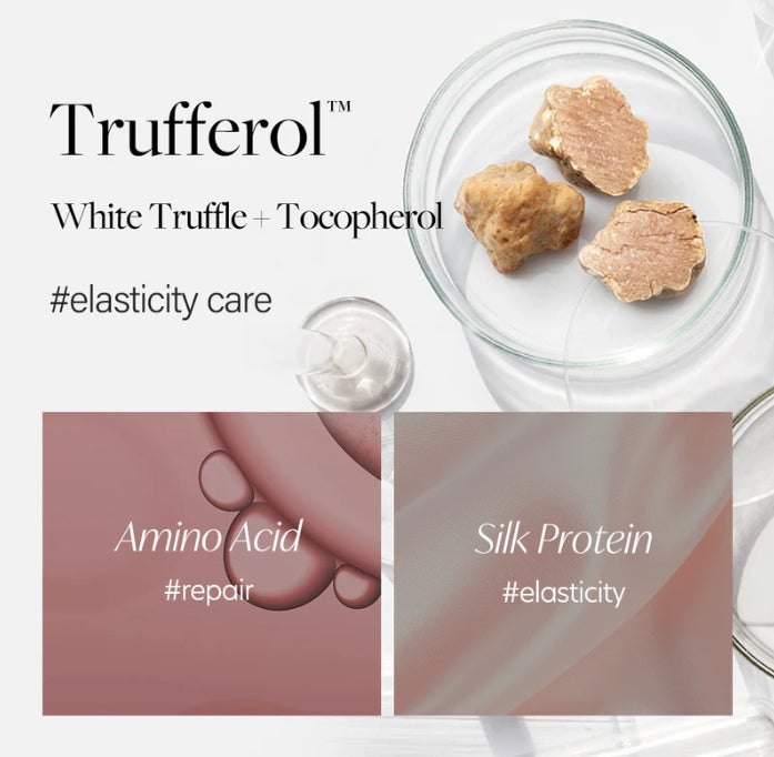 - Weiße Trüffel bieten eine nährstoffreiche Pflege und regenerieren geschädigtes Haar ohne den Einsatz aggressiver Chemikalien. Verschiedene Nährstoffe in Tocopherol, darunter Vitamin E, sorgen für einen krausefreien, seidigen Glanz.