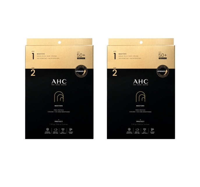 Experience comprehensive sun protection and skin hydration with the AHC Masters Pro Patch 2-Step Set, combining SPF50+ Aqua Rich Sun Cream and hydrogel patches for outdoor activities.