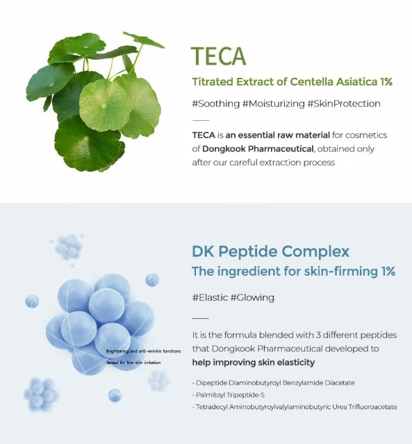 - Peptide Complex: Formulated with three distinct peptides developed by Dongkook Pharmaceutical to help improve skin elasticity and resilience.