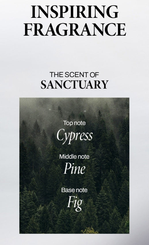- Cypress & Fig Aroma: Fresh, woody scent with fig undertones to help relax and rejuvenate.