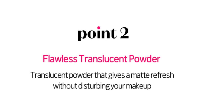 - Translucent Finish: Transparent micro powder that mattifies without altering makeup color or coverage.