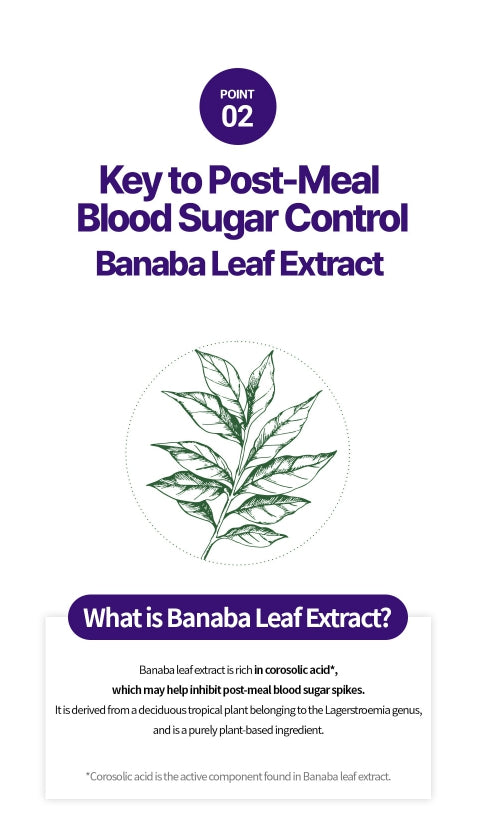 - Banaba Leaf Extract: Helps regulate blood glucose spikes after carbohydrate-rich meals.