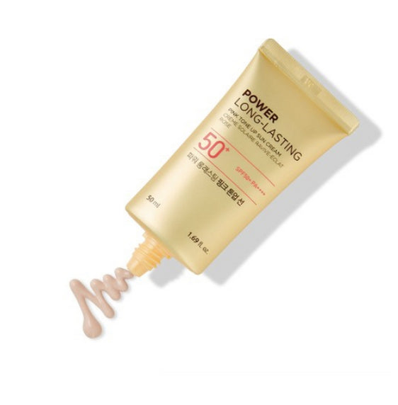 THE FACE SHOP Power Long‑Lasting Pink Tone Up Sun Cream is a pink‑tinted sunscreen (50 ml) offering broad UV protection (SPF 50+ / PA++++). It brightens and evens skin tone while doubling as a makeup base.