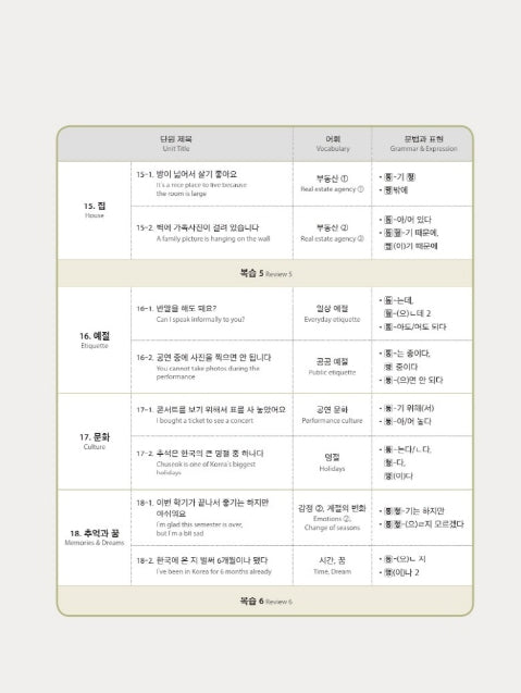 • Structured curriculum for learners with approximately 200 hours of prior Korean study.