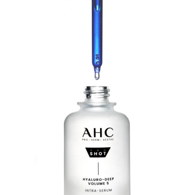 Experience deep hydration and youthful radiance with AHC's Pro Shot Hyaluro-Deep Volume 5 Intra-Serum, featuring advanced 5D HA FILL technology.