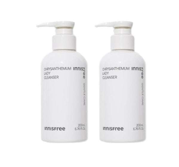 The 2 x innisfree Chrysanthemum Lady Cleanser 200ml is a gentle, additive-free feminine wash from Korea formulated to soothe and cleanse delicate skin; upgraded to a milder formula that uses chrysanthemum extract to calm irritation while maintaining a balanced pH and supporting the skin’s natural microbiome for daily intimate care.