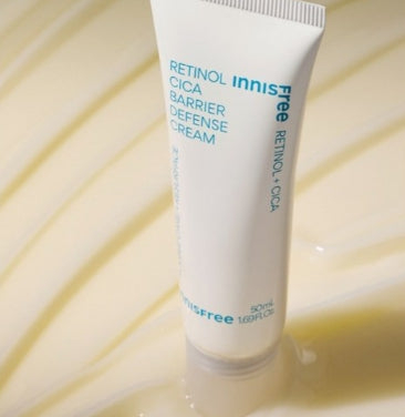 innisfree Retinol Barrier Defense Cream is a 50ml barrier-repair formula combining low-irritant retinol with cica-derived calming complexes to strengthen weakened, easily irritated skin. Designed for nightly or targeted use, this cream supports skin renewal while helping to soothe redness and sensitivity from environmental stressors. Lightweight yet nourishing, it helps improve texture and resilience without heavy greasiness, making it suitable for those building retinol tolerance or seeking support for compromised skin barriers.