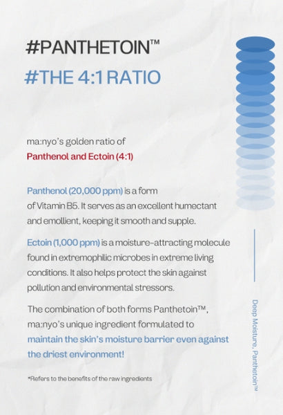 - Panthetoin Complex: A 4:1 blend of Panthenol and Ectoin designed to provide calming, barrier-repairing hydration and resilience for sensitive or dry skin.