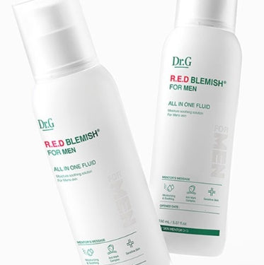 An all‑in‑one lightweight fluid for men from Dr.G’s official global “R.E.D Blemish for Men” line. This formula calms irritation with 5‑Cica Complex, balances shine with oil-control actives, and hydrates without stickiness—ideal post-shave or for oily skin types.