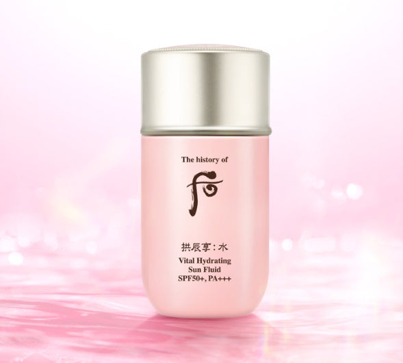 Shield your skin with The History of Whoo Gongjinhyang:Soo Sooyeon Vital Hydrating Sun Fluid, a luxurious herbal sunscreen offering SPF50+ PA+++ protection and deep hydration.