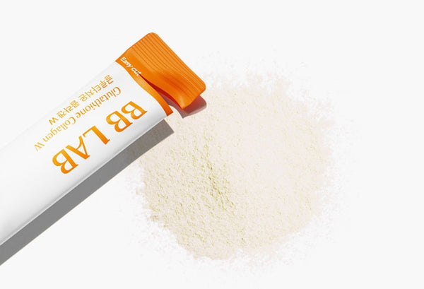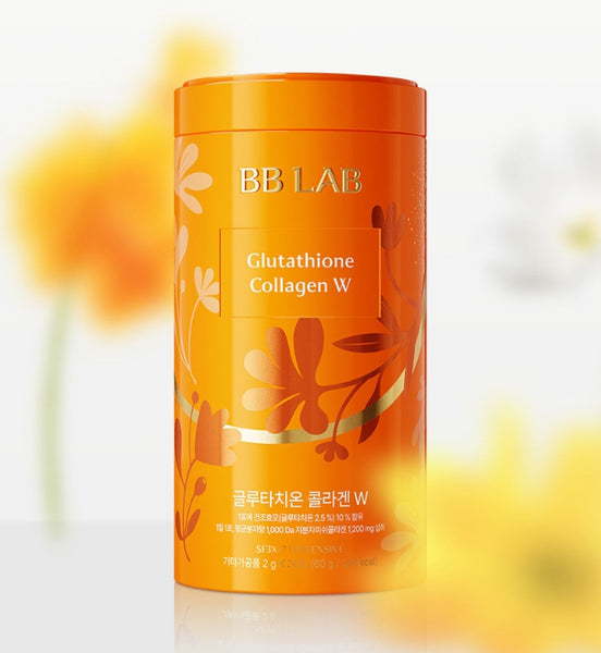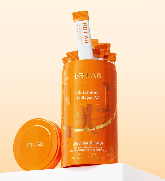 Nutrione BB LAB Glutathione Collagen W blends premium glutathione and hydrolyzed collagen in a silky powder formula, perfect for radiant daily wellness.