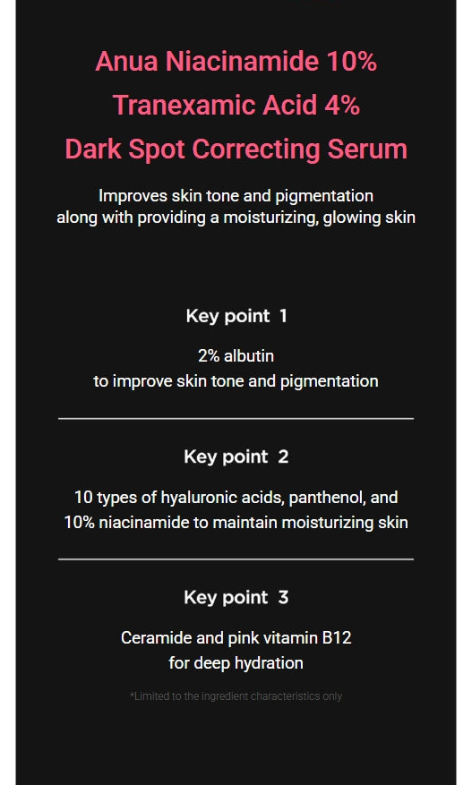 - Anua Niacinamide 10% + TXA 4% Dark Spot Correcting Serum 30 ml