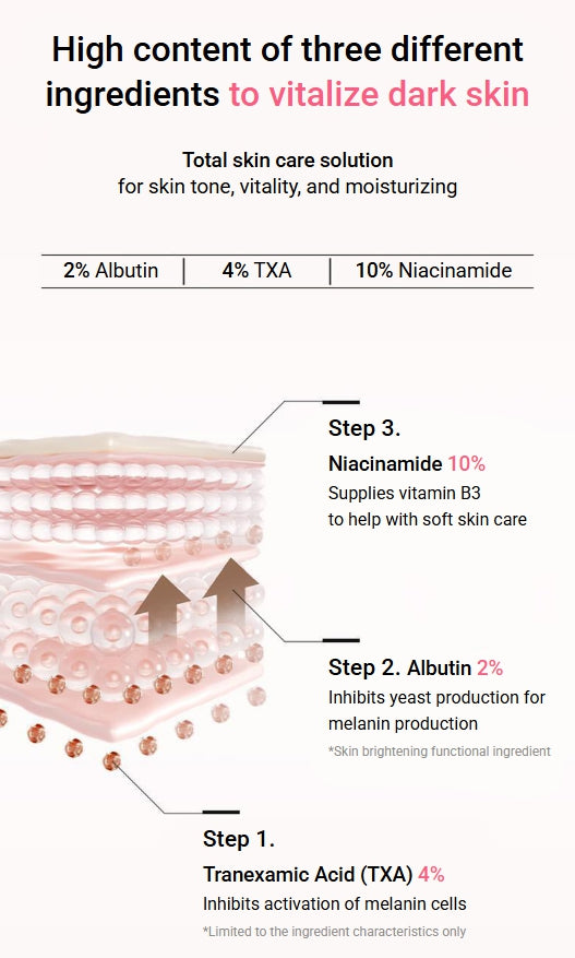 - K‑Beauty Formulation: Developed in Korea with a focus on effective actives and gentle delivery to target hyperpigmentation while maintaining skin health.