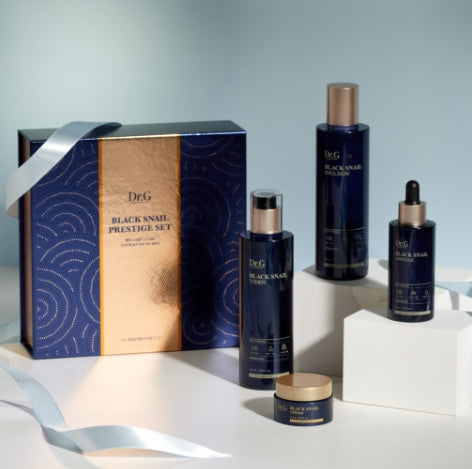 Complete your luxury skincare routine with the Dr.G Black Snail Prestige Skincare Gift Set, a four-piece anti-aging regimen enriched with black snail mucin and botanical actives. This premium set includes Toner, Ampoule, Emulsion, and Cream to hydrate, lift, and revitalize skin from start to finish.