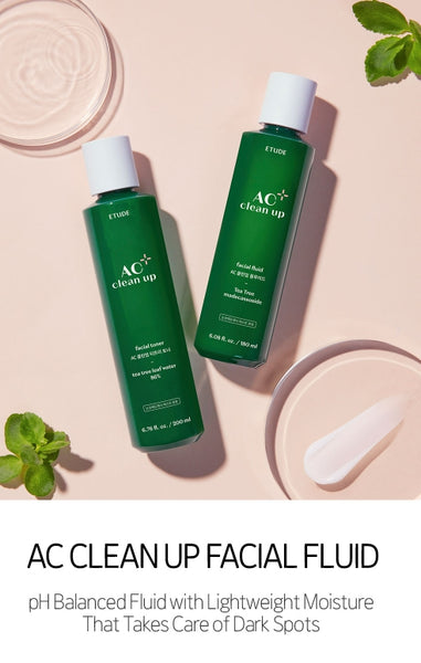 ETUDE AC Clean Up Facial Toner 200ml + Fluid 180ml from Korea