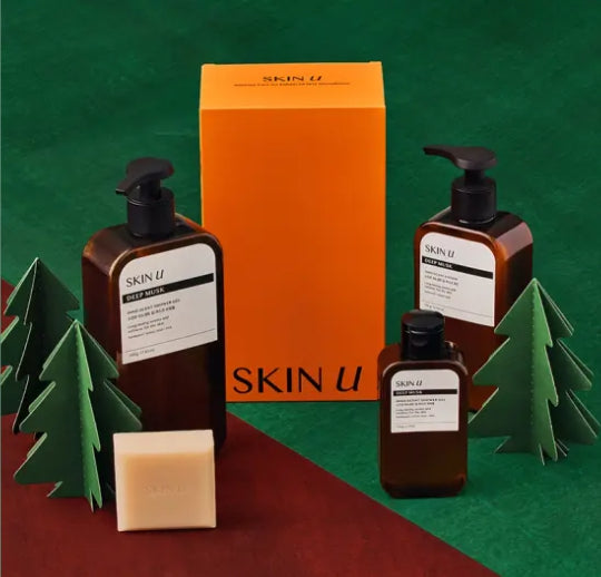 HAPPY BATH Skin U Deep Musk Gift Set pairs a long-lasting, softening shower gel with a nourishing body lotion to leave skin smooth and subtly fragranced. Formulated with panthenol, amino acids and AHA for hydration and gentle exfoliation, the set is designed to improve skin moisture and comfort while delivering a sophisticated deep musk scent. Both products are irritation-tested to help support sensitive skin routines and are presented as an easy gift choice for daily body care.