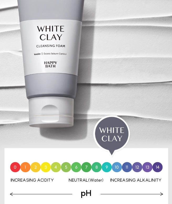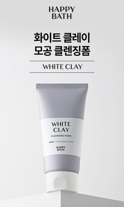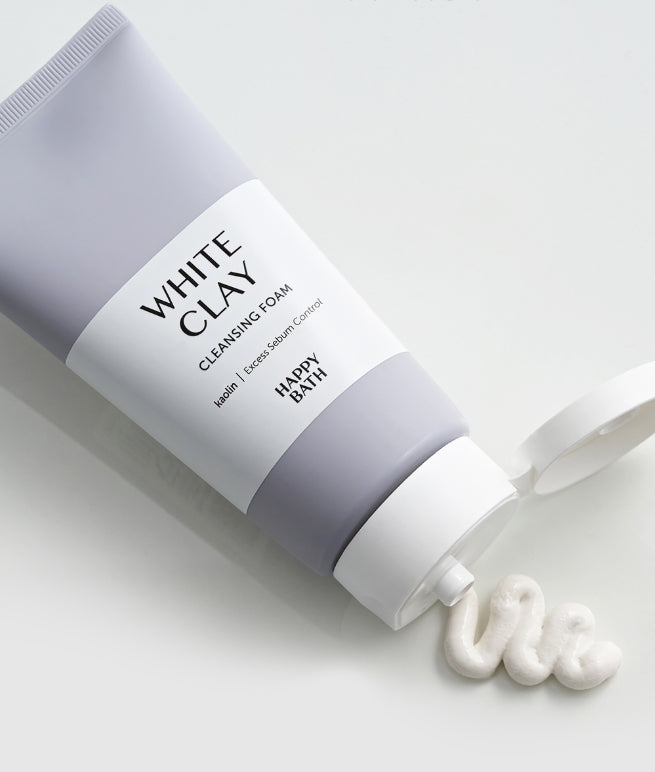 HAPPY BATH White Clay Cleansing Foam is a gentle yet effective facial cleanser formulated with a high concentration of white clay (kaolin) to absorb excess sebum and impurities while leaving skin feeling clean and refreshed. The rich, bouncy cream texture adheres like a soft mask to lift dirt and oil without harsh stripping, and its mildly alkaline pH helps create a squeaky-clean finish ideal for oily and combination skin types. Free from animal-derived ingredients, mineral oil, polyacrylamide, imidazolidinyl urea and several other common irritants, this Korean-made cleansing foam is designed for daily use to clarify pores and refine skin texture.