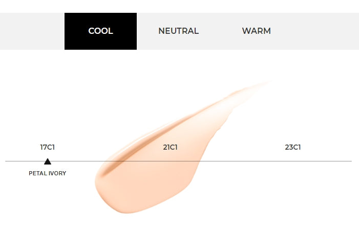 - 17C1 Petal Ivory: Light cool tone with rosy undertones