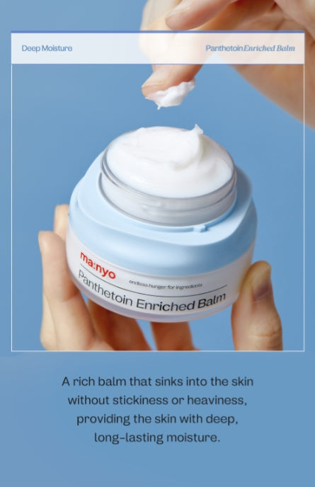 ma:nyo Panthetoin Enriched Balm 80ml is a barrier-restoring balm from Korea formulated for deep, long-lasting hydration during dry seasons and harsh winters. Powered by ma:nyo's Panthetoin 4:1 golden ratio of Panthenol and Ectoin, plus a patented U-Oliosome delivery system, this balm soothes, strengthens the skin's moisture barrier, and provides continuous hydration without heavy residue—suitable for dry, sensitive, and barrier-compromised skin seeking reliable, round-the-clock moisture.