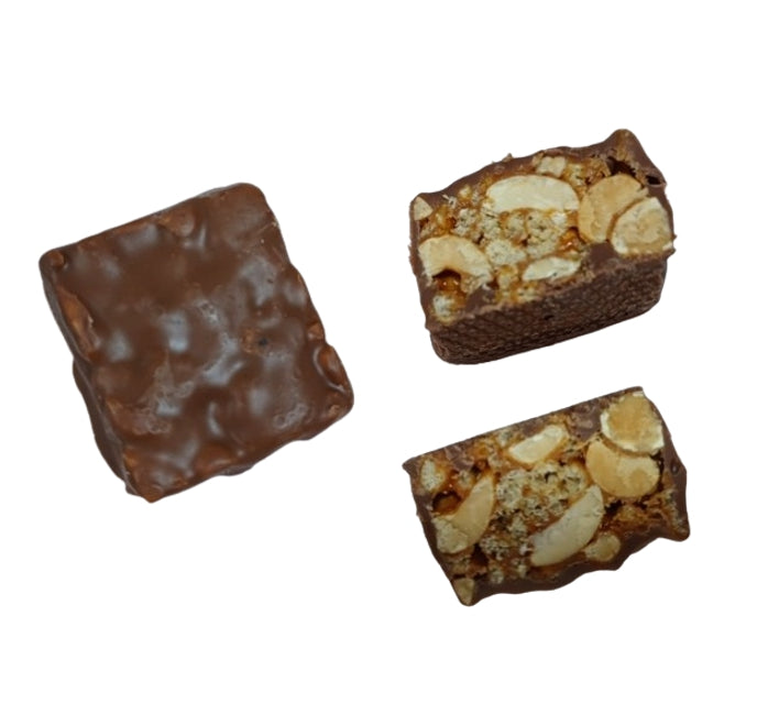 - Main Ingredients: Almonds, peanuts, cereals, chocolate, sugar, vegetable oil