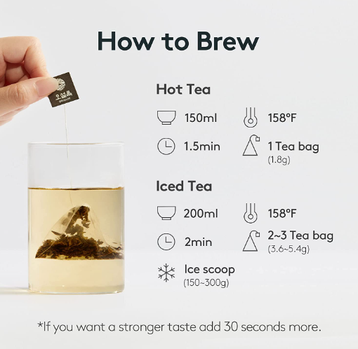 - Brewing Instructions: 1 Tea Bag/ 90 °C (194 °F)/ 2 min