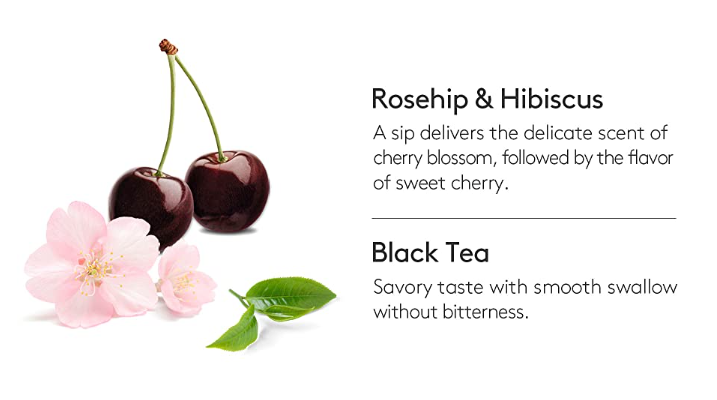 Welcome spring with OSULLOC Cherry Blossom Tea, a graceful blend of black tea infused with rosehip, hibiscus, and delicate cherry blossom fragrance for a floral, fruity escape.