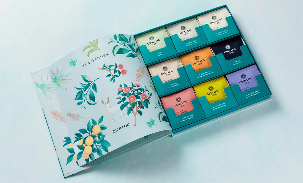 Explore the diverse flavors of Jeju with the OSULLOC Tea Garden Gift Set, a premium collection of 9 signature blends from floral to fruity to classic, perfectly arranged for gifting or mindful tasting.